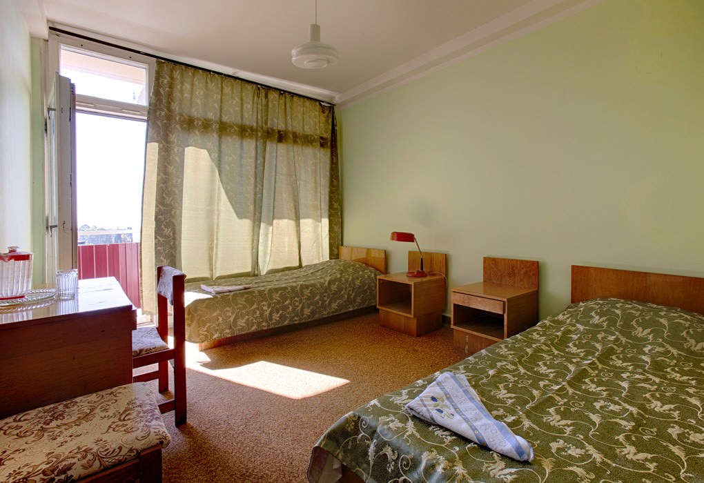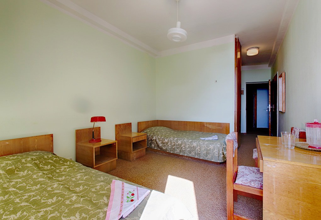 Площадь номера - 16 кв.м. 2 осн. места. 1 доп. место. Мебель: кровати односпальные, прикроватные тумбочки, шкаф. Оборудование: кондиционер, телевизор (в холле), холодильник (в холле). Сервис: Wi-Fi бесплатно, смена полотенец, смена постельного белья, уборка номера.